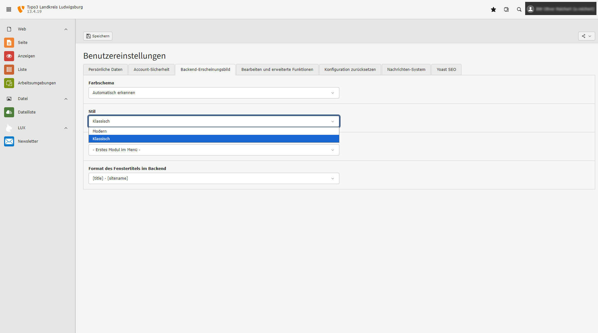 In the Backend appearance tab, you can switch to the classic view (left column dark, the rest light). After making your selection, click Save at the top.