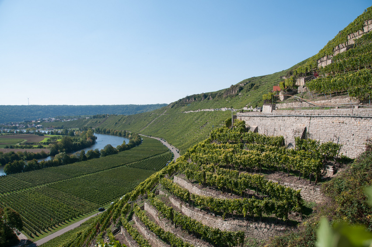 The Neckarschleifen steep slope loops in Kirchheim am Neckar, Ingersheim, Gemmrigheim, Mundelsheim and Hessigheim offer magnificent views over a length of 5 to 7 km and allow you to experience the steep slopes first-hand. The steep slope app "Echt.Schön.Schräg." provides accompanying information on steep slope viticulture, places to stop for refreshments and other useful information for planning excursions.(https://echt-schoen-schraeg.de/app/)