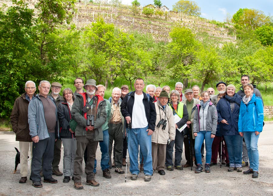 During the excursion, there were explanations about fire salamanders, common toads, yellow-bellied toads, green toads, Alpine newts and pond newts. The nature conservation wardens were also interested in other natural sights in the Glemstal, such as the dry stone walls, orchids and the herd of Edmund Wörner, the town shepherd. A particular highlight was the foil ponds behind the Talhausen sewage treatment plant. At the beginning of the forest, a number of small artificial frog ponds were constructed, which are looked after by the local nature conservation association. A close look into the ponds revealed amphibian and dragonfly larvae. Not only the rare yellow-bellied toads, but also some alpine newts and baby fire salamanders were visible. The direct encounter with these animals was a special moment for some nature conservation wardens and for a few children who were at the ponds.