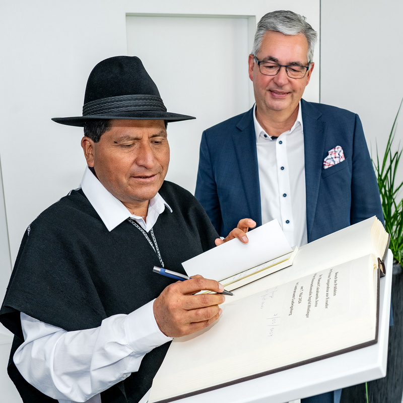 "È una delle particolarità del nostro distretto avere una rappresentanza consolare onoraria della Repubblica dell'Ecuador a Ludwigsburg", ha dichiarato l'amministratore distrettuale Allgaier. "Per questo sono ancora più contento che abbiamo l'opportunità di conoscere i rappresentanti di questo Paese sudamericano e le sue tradizioni e peculiarità". Il prefetto Caizabanda è venuto nell'ufficio dell'amministrazione distrettuale accompagnato dalla moglie e dalla figlia. Non solo hanno visto insieme il filmato del distretto, ma hanno anche goduto di una vista molto speciale della città barocca e del distretto durante un giro sulla ruota panoramica City Star. "Non vediamo l'ora di intensificare il dialogo e i legami", ha proseguito l'amministratore distrettuale Allgaier. È previsto che il prefetto venga nel distretto di Ludwigsburg in occasione della sua prossima visita, accompagnato dai sindaci della sua provincia.