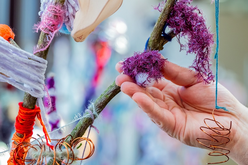 Die Werkschau, die noch bis zum 3. Juni im Kreishaus zu sehen ist, präsentiert im Rahmen der Reihe „Kunst im Kreishaus“ vielfältige und kreative Arbeiten rund um das Thema Textilien. Susanne Kroll, Kuratorin und Leiterin des Bereichs Kunst im Kreishaus, beschreibt bei der Führung für Menschen mit Sehbehinderung ausgewählte Werke, vermittelt Hintergründe und beantwortet Fragen. Unterstützt wird sie von Claudia Lychacz, der kommunalen Behindertenbeauftragten des Landkreises Ludwigsburg, die selbst blind ist.