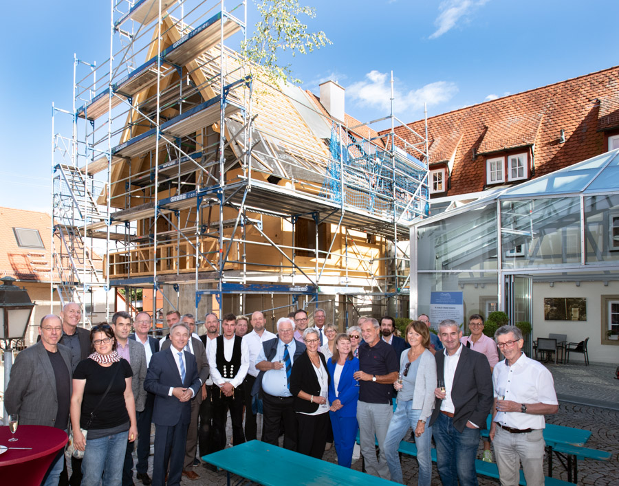 Die PKC-Erweiterung schließe sich sehr harmonisch an das Hauptgebäude an, stellte Landrat Haas bei der Baustellenbesichtigung fest. „Ich freue mich, dass der Kreistag 2018 die Erweiterung einstimmig befürwortet hat“, so der Chef der Kreisverwaltung und 2. PKC-Vorsitzende. Die moderne Planung in Holzbauweise überzeuge ihn bereits jetzt im Rohbaustadium, so Haas weiter. „Das PKC wird durch die Erweiterung zukunftsfähig aufgestellt und kann seine Lernangebote für die verschiedenen Zielgruppen besser verwirklichen“, sagte Landrat Haas. Bisher kam das PKC sowohl bei den Lernangeboten, als auch bei den Unterbringungsmöglichkeiten an seine Grenzen, Doppelbelegungen von Gruppen waren aufgrund des fehlenden zweiten Seminarraums nicht möglich.