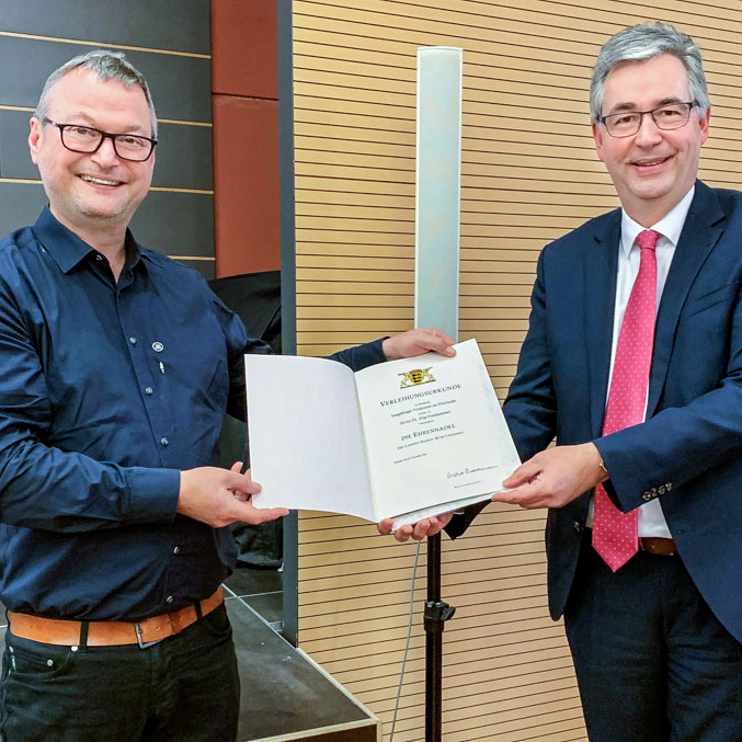 „Ich denke spätestens jetzt, meine Damen und Herren, liebe Mitglieder des Gemeinderats, ist klar, warum Dr. Jörg Frauhammer die Anforderungen an die Landesehrennadel mehr als übertroffen hat“, stellte der Landrat fest, der „mit großer Freude und großem Respekt vor Ihnen und Ihrem außerordentlichen Engagement“ die Ehrennadel des Landes Baden-Württemberg an Dr. Jörg Frauhammer verlieh.