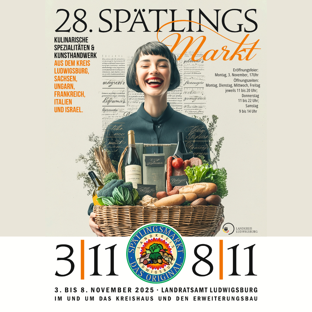 Wenn sich im Ludwigsburger Kreishaus der Duft von frischem Brot, Kräutern und feinen Speisen mischt, dann ist wieder Spätlingsmarkt-Zeit. Vom 3. bis 8. November 2025 verwandelt sich das Verwaltungsgebäude in einen bunten Marktplatz voller regionaler Spezialitäten, feinem Kunsthandwerk und spannenden Begegnungen.
