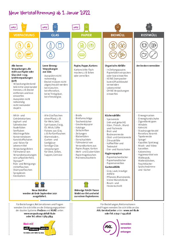 BIOMÜLL, RESTMÜLL, PAPIER, VERPACKUNGEN, GLAS.