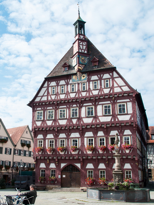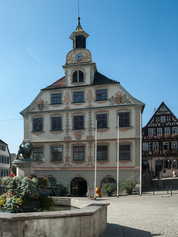 Das Rathaus aus dem Jahr 1441 mit seinem kunstvoll gearbeiteten Fachwerk ist nur eines der vielen schützenswerten Kulturdenkmälern Markgröningens.